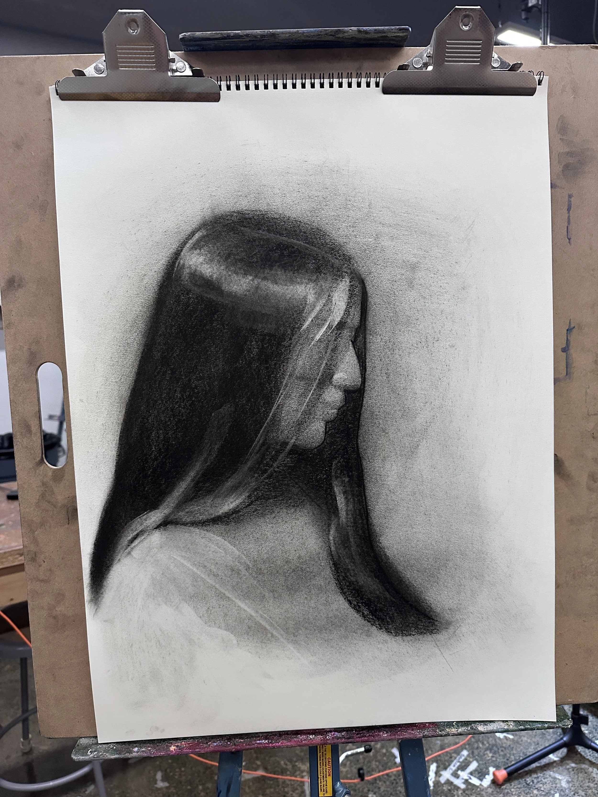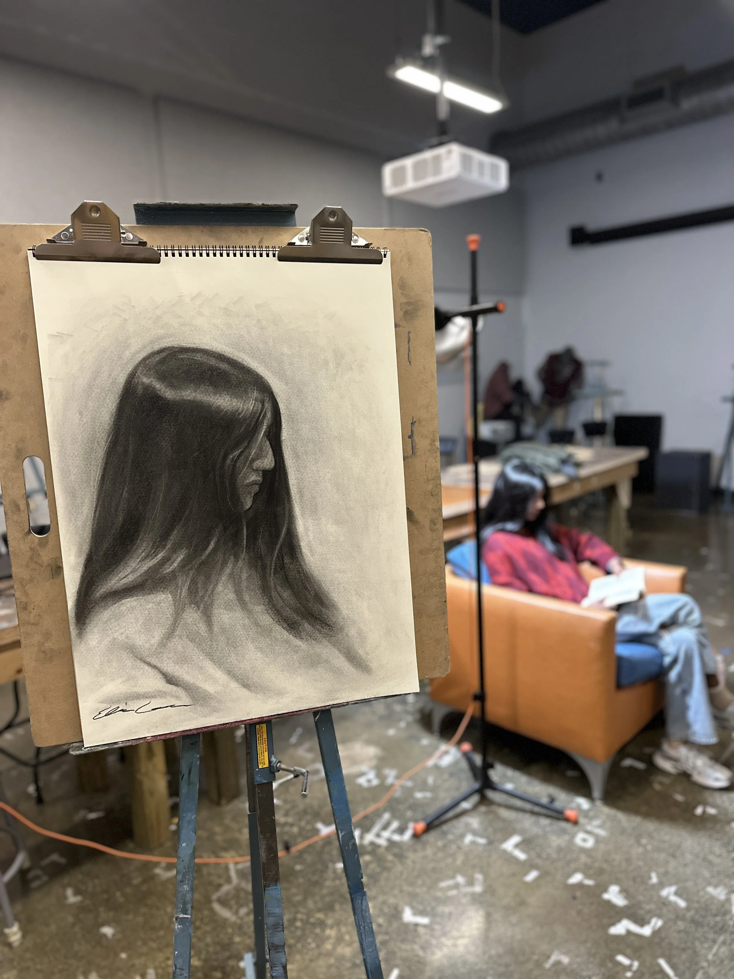 So many little things went wrong with this piece, and the sad part about it is that these “wrong things” were totally preventable (I’ll discuss this more in the technical portion of this blog). Consequently, my “finished result” appeared flat and boring. Although the live drawing session portion of my work was finished, I didn’t feel that way about the piece itself. I left it alone for almost two days because I was too frightened to try and fix it.